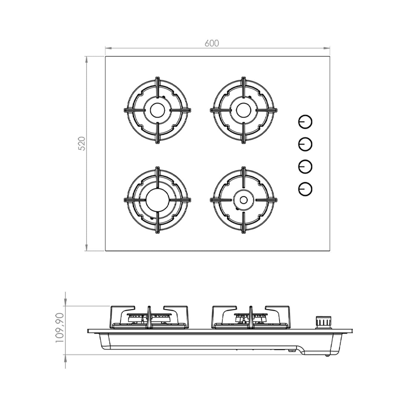 Ocak Tipi: 4 gözlü gazlı ocak