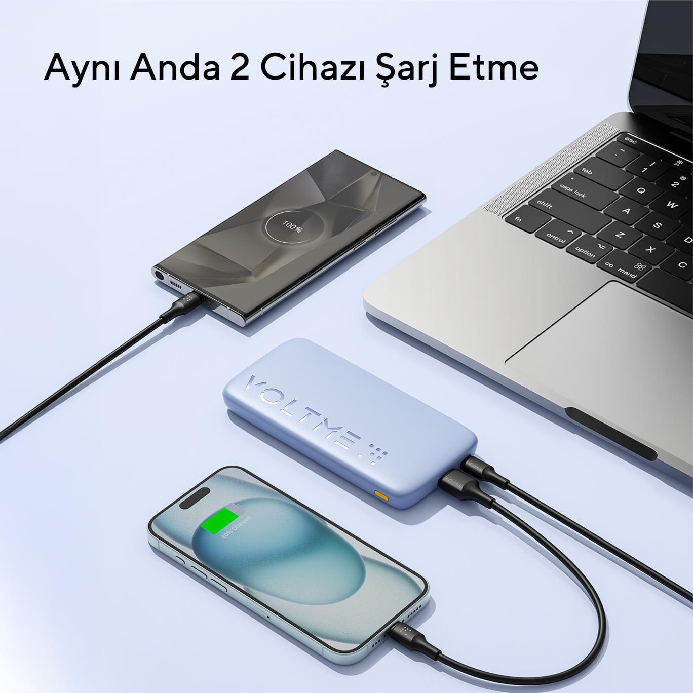 Çift cihaz şarjı: Aynı anda iki cihazı birden şarj edebilme özelliği ile maksimum kullanım kolaylığı sağlar